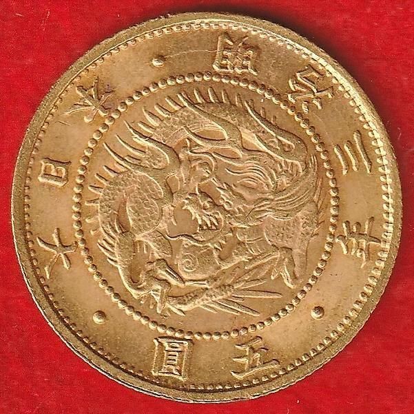 明治3年 旧5円金貨 不明瞭ウロコ