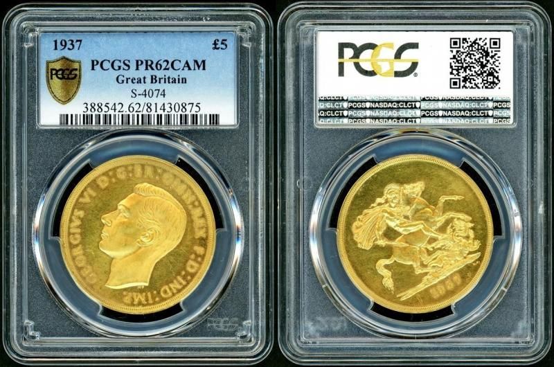 イギリス 1937年 ジョージ6世 5ポンド金貨 PCGS PR62CAM