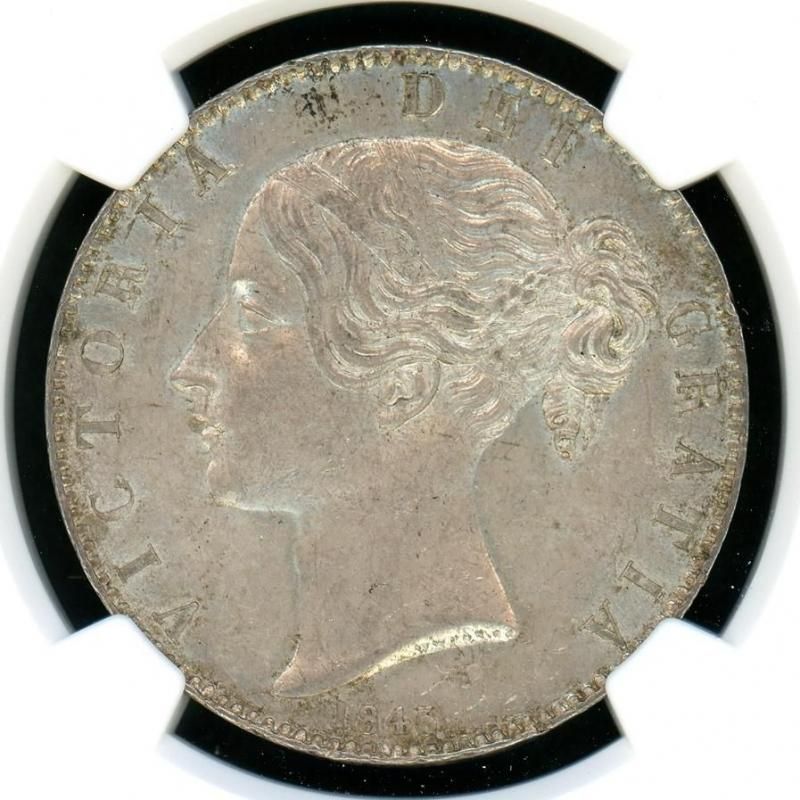 イギリス 1845年 ヴィクトリアヤング CROWN銀貨 MS63
